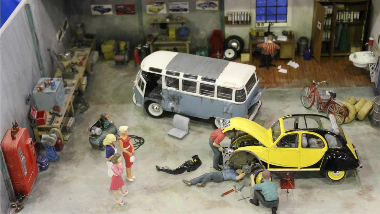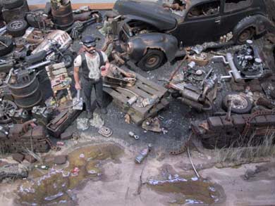 Hier siehst Du verschiedene Dioramen mit Modellautos. Die Maßstäbe betragen 1:35 und 1:43. Zu sehen sind z.B Szenen auf dem Schrottplatz.