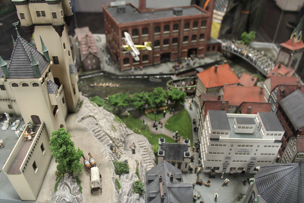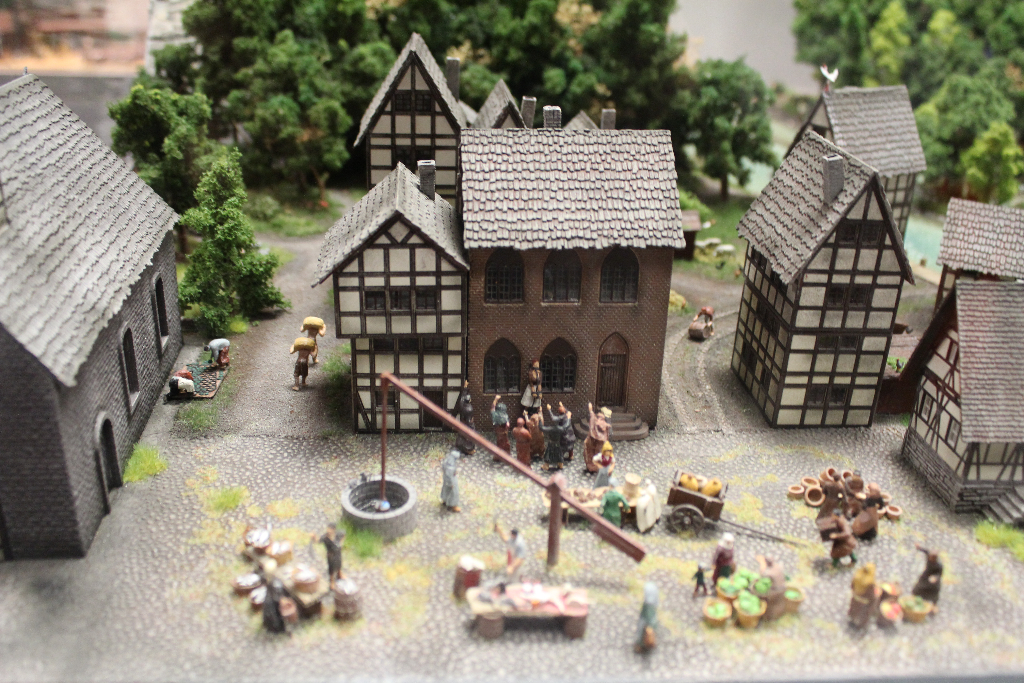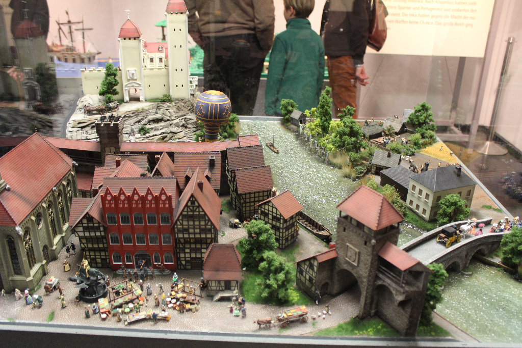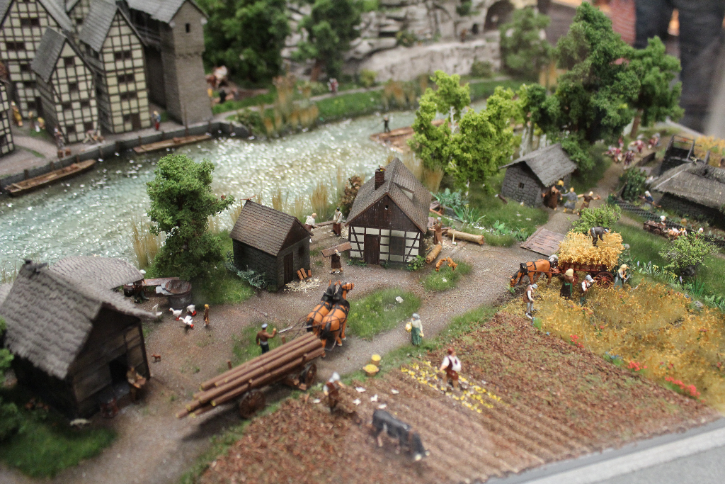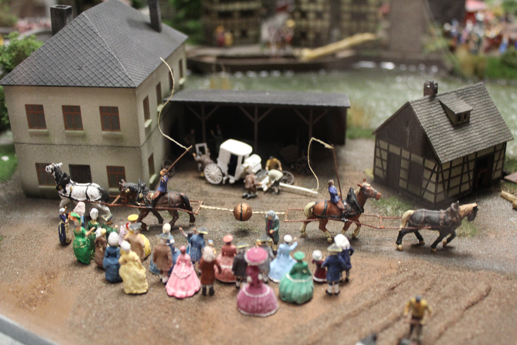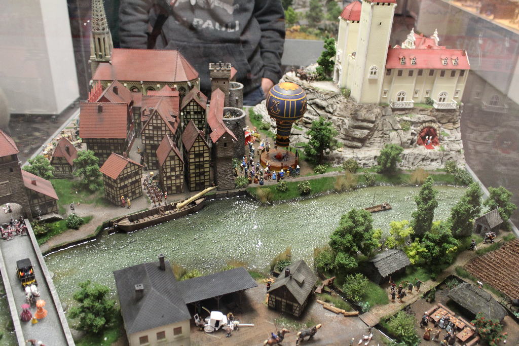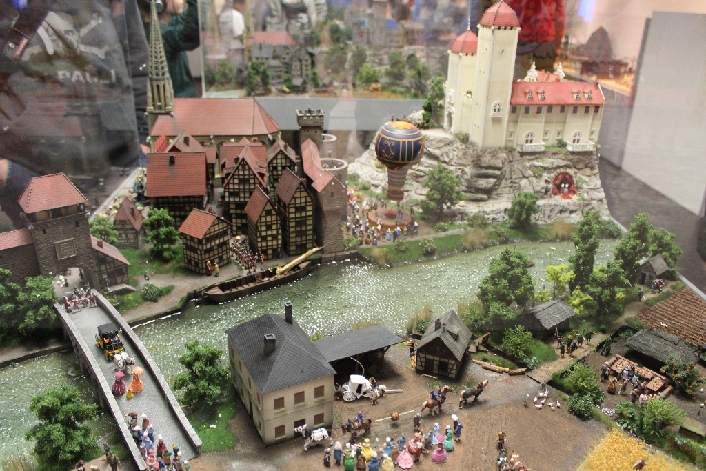 Die Besonderheit liegt aber im Detail: Für die Austellung wurden tausende Figuren, Gebäude, Landschaften und Gefährte aufwendig von Hand erschaffen. Ereignisse der jeweiligen Epoche wurden symbolisch nachgebaut und die Architektur genauestens nachempfunden. Es wurde keine Realität an realen Orten nachgebildet, sondern Ideen, Ereignisse und Lebensumstände der Menschen in Ihrer Zeit an einem fiktiven Ort.