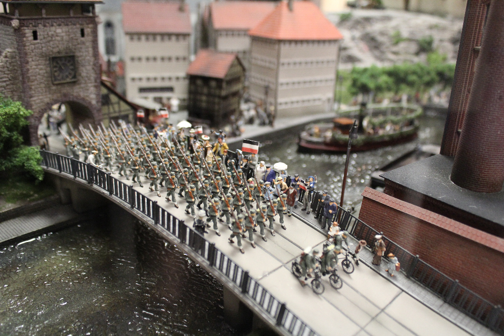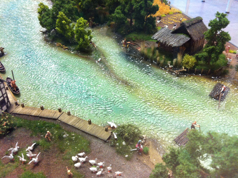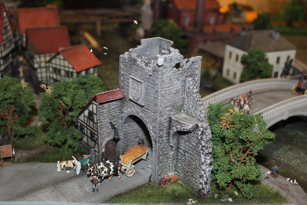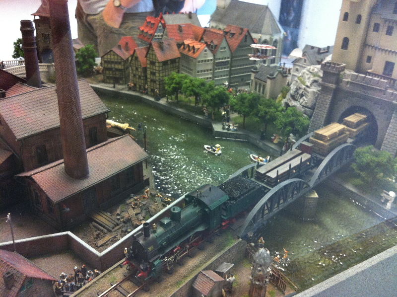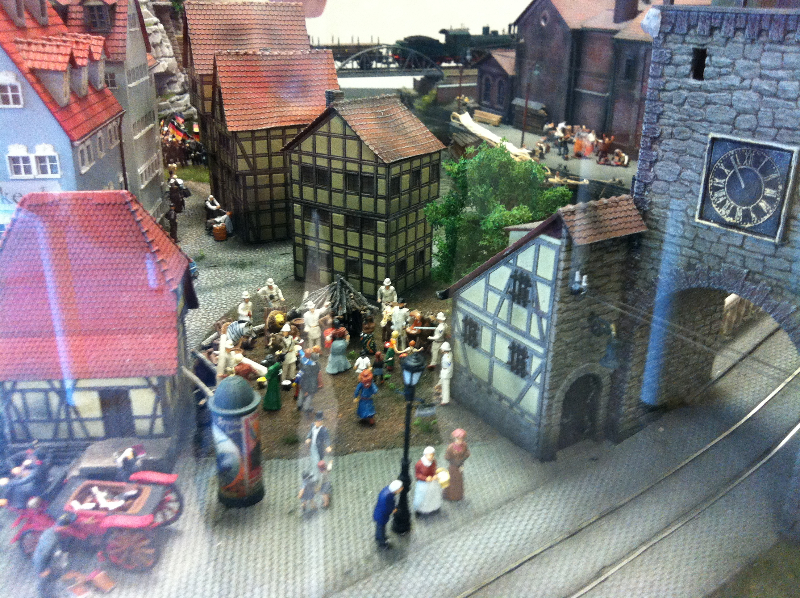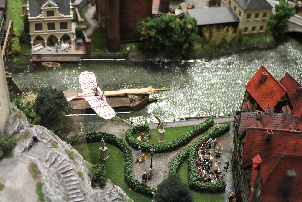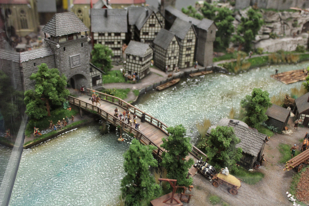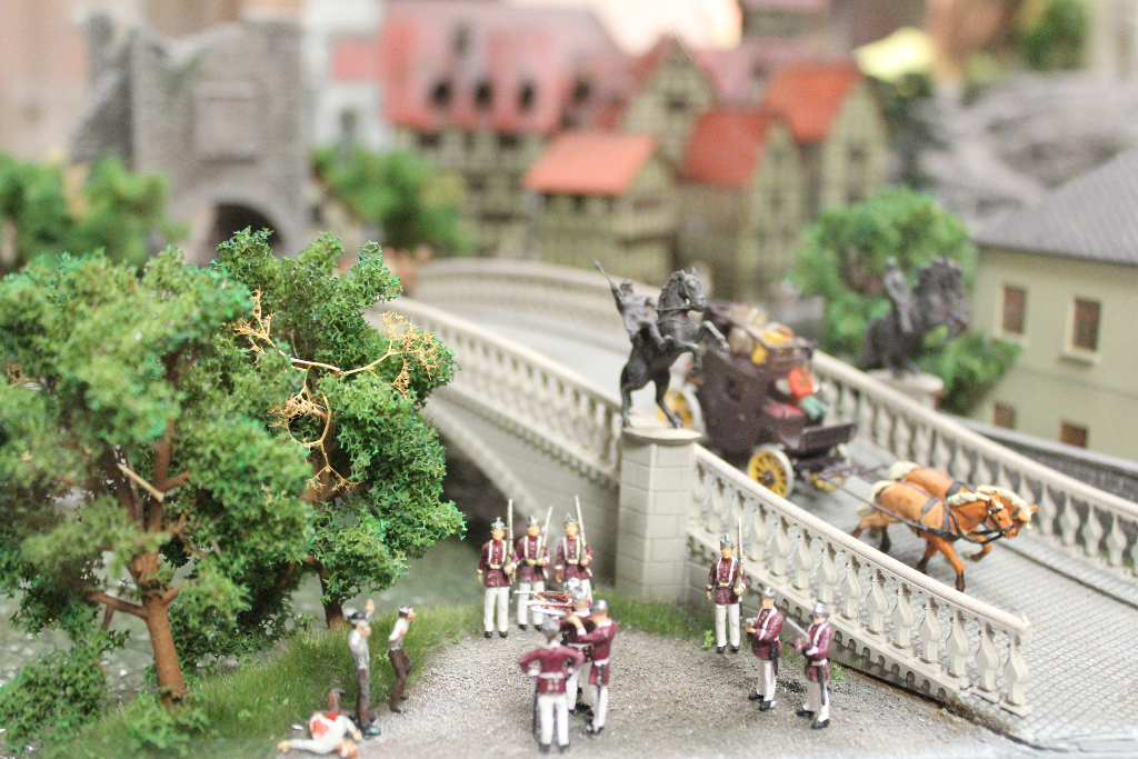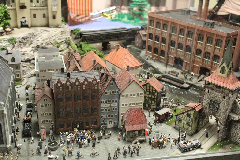 Die Besonderheit liegt aber im Detail: Für die Austellung wurden tausende Figuren, Gebäude, Landschaften und Gefährte aufwendig von Hand erschaffen. Ereignisse der jeweiligen Epoche wurden symbolisch nachgebaut und die Architektur genauestens nachempfunden. Es wurde keine Realität an realen Orten nachgebildet, sondern Ideen, Ereignisse und Lebensumstände der Menschen in Ihrer Zeit an einem fiktiven Ort.