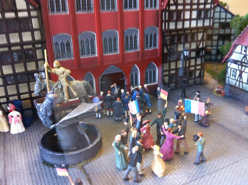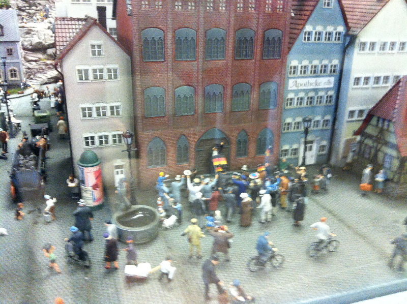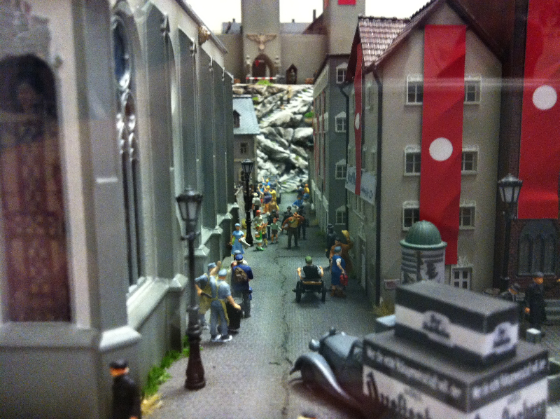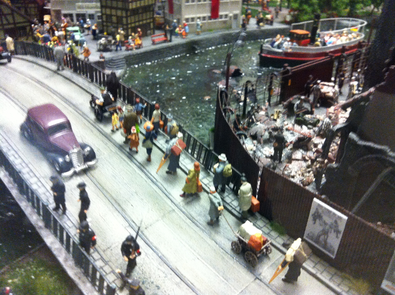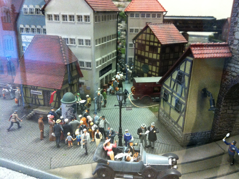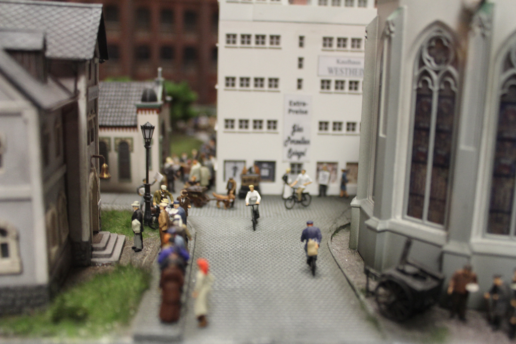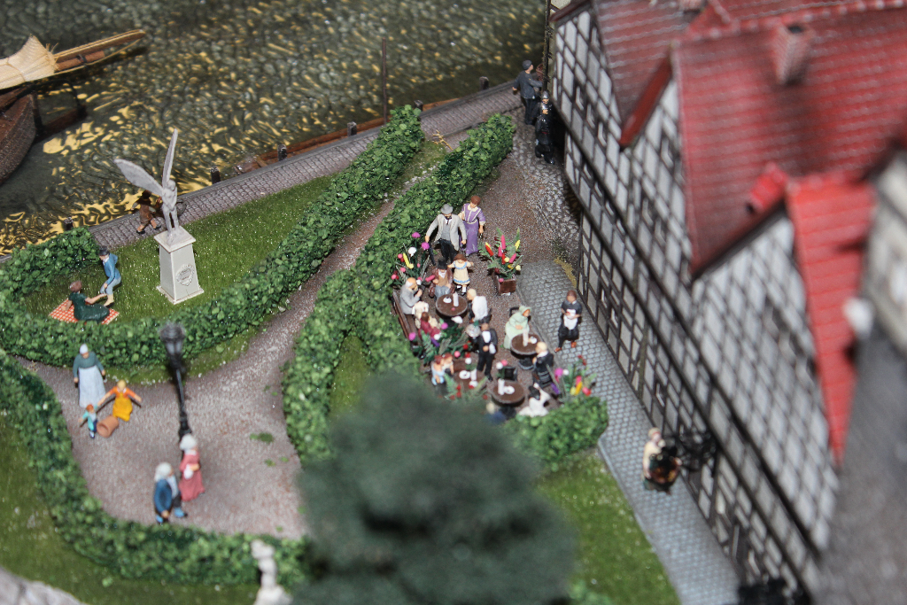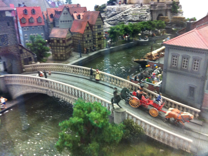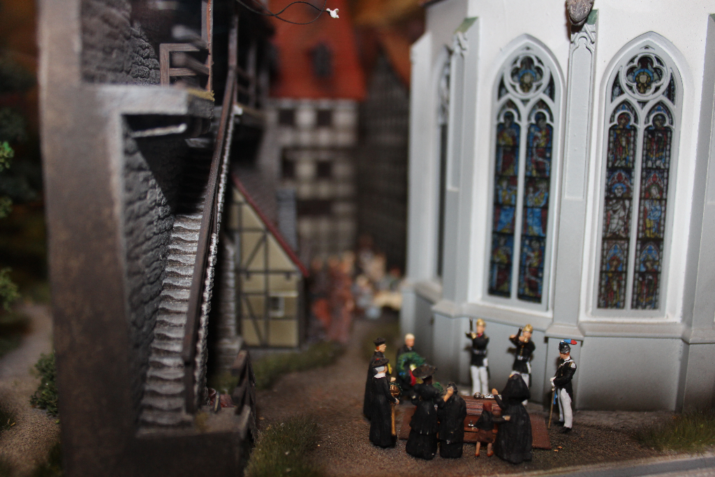 Die Besonderheit liegt aber im Detail: Für die Austellung wurden tausende Figuren, Gebäude, Landschaften und Gefährte aufwendig von Hand erschaffen. Ereignisse der jeweiligen Epoche wurden symbolisch nachgebaut und die Architektur genauestens nachempfunden. Es wurde keine Realität an realen Orten nachgebildet, sondern Ideen, Ereignisse und Lebensumstände der Menschen in Ihrer Zeit an einem fiktiven Ort.