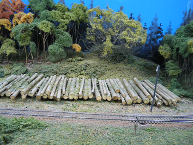 Das Motto ist vom Holz zum Papier. Ein Anlagenschenkel beginnt mit einem gr0ßen Sägewerke und Bahnverladung.