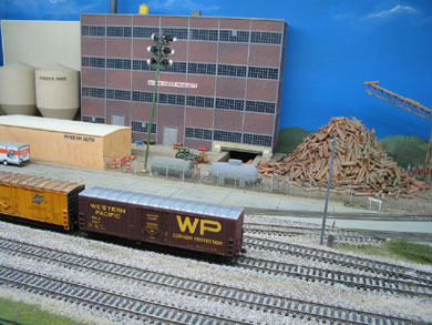 Vom Sägewerk geht es in die Papierfabrik. Die typischen amerikanischen Modellhäuser und Fabriken dürfen nicht fehlen. Die Modelle stammen vom amerikanischen Hersteller DPM.