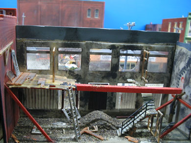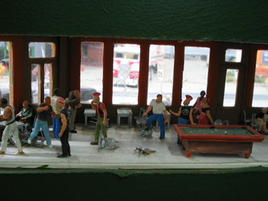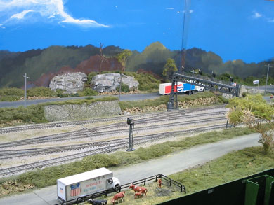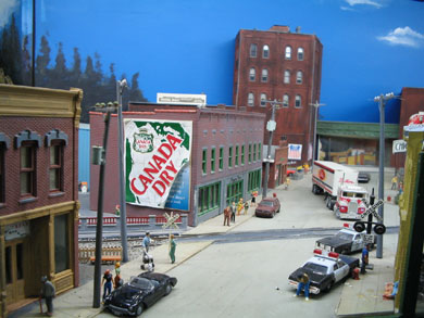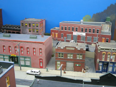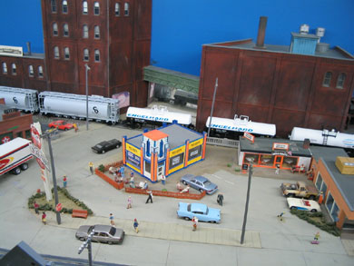 Typisches US-Kleinstadtflair schließt den anderen Anlagenschenkel ab. Insgesamt hat diese Modellbahnanlage eine Länge von über 12 Metern und ist in Modulbauweise erbaut worden.