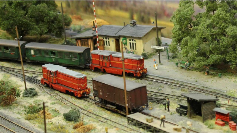 Das Thema dieser polnischen H0 Modellbahn ist ein idyllischer Anschlussbahnhof „Lewin Leski“ der polnischen Staatsbahn PKP in Epoche IIIc.
