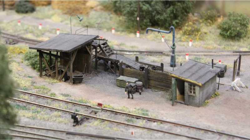 Am Normalspurbahnhof beginnt eine Schmalspurbahn (H0e). Der Schmalspurbahnhof hat ein eigenes Bahnhofsgebäude, eine Bekohlungsanlage mit Wassserkran sowie ein Anschlussgleis zu einer Fabrik für Spirituosen (im Video gut zu sehen).