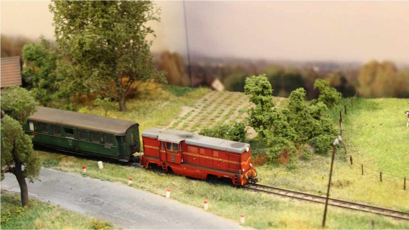 Die Schmalspurbahn entstand auf mehreren H0e-Modulen nach polnischen Motiven der einstigen Rastenburger Kleinbahn am Haltepunkt „Bozepole Mazurskie“. Neben der authentischen Darstellung des Bahnhofs der polnischen Staatsbahn PKP, wurde auch ein typischer polnischer Bauernhof (im Video und im Bild gut zu sehen) aus der Zeit um 1968-1970 nachgebaut.