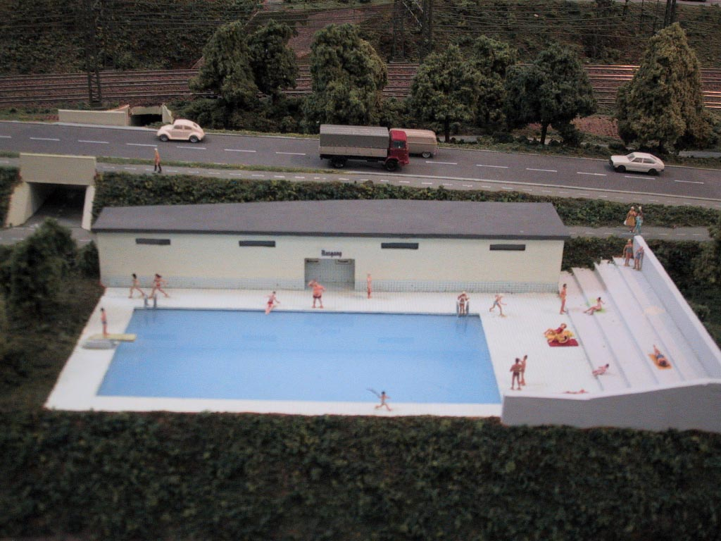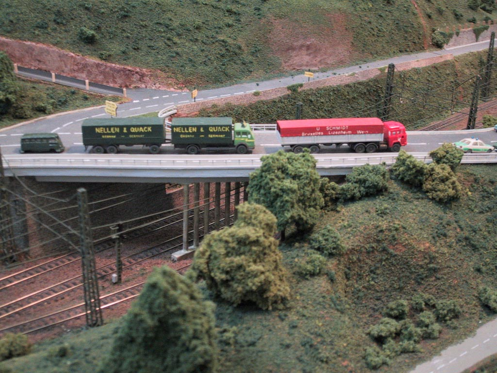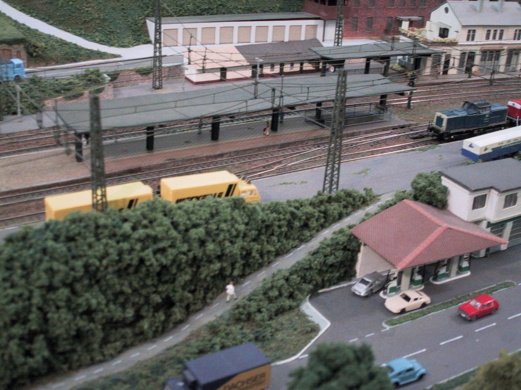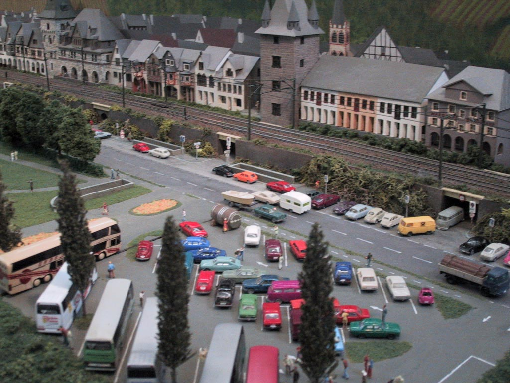 Bacharach ist eine Kleinstadt 130 km südlich von Köln am Westufer des Rhein. Diese Weinstadt ist Vorbild dieser Spur N-Anlage. Verbaut wurde hier Peco-Gleis Code 55. Die Schienen wurden mit Rostfarbe patiniert und dunkel eingeschottert. Die Oberleistung ist von Sommerfeldt und nicht funktionsfähig. Die Bäume sind ein Selbstbau aus Cocktail-Stäbchen die mit Woodland Scenics überzogen wurden. Die meisten Gebäude sind selbst gebaut aus Polystyrene, Balsa-Holz, Plastik sowie Karton. Rollendes Material stammt von Arnold, Fleischmann, Roco und Minitrix.