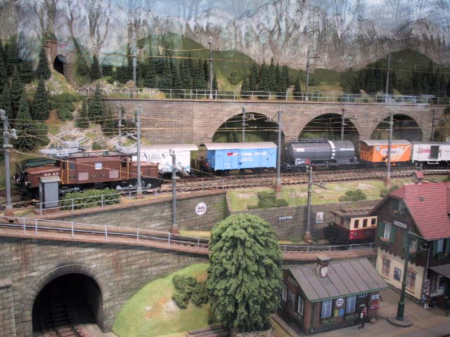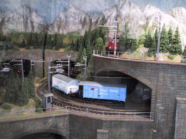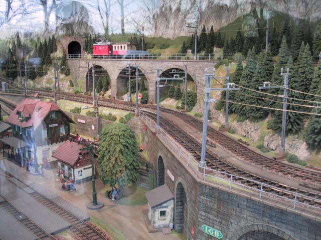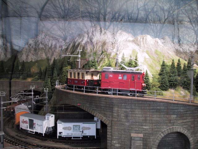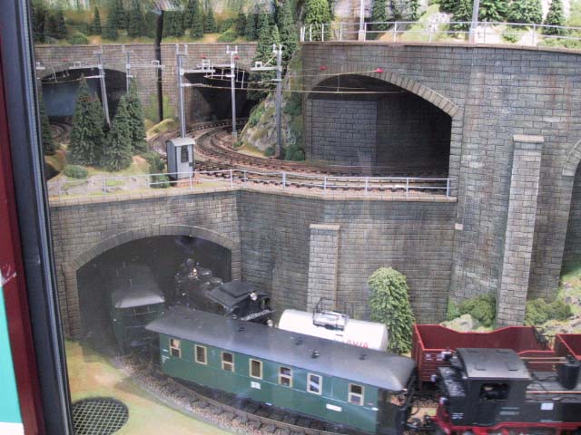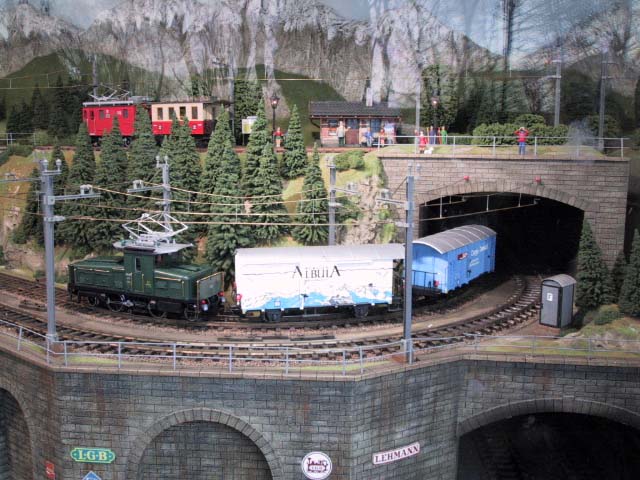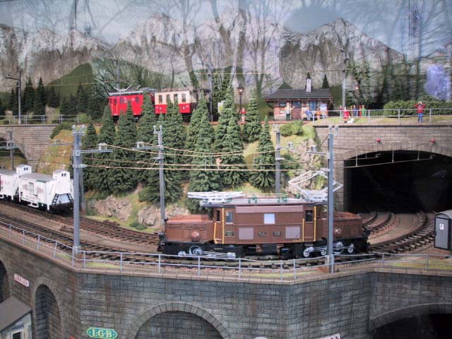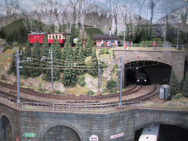 Hier findest Du die Bilder zur LGB Schauanlage in Spur IIm. Wie anfangs schon erwähnt, ist diese Anlage in einem Anhänger mit Glasfront montiert. Die Länge schätzen wir aus 6-7 Meter, bei ca. 1,50 Meter Tiefe. Die Anlage stammt etwas aus dem Jahre 2004 und man konnte diese für Ausstellungen und Messen mieten.