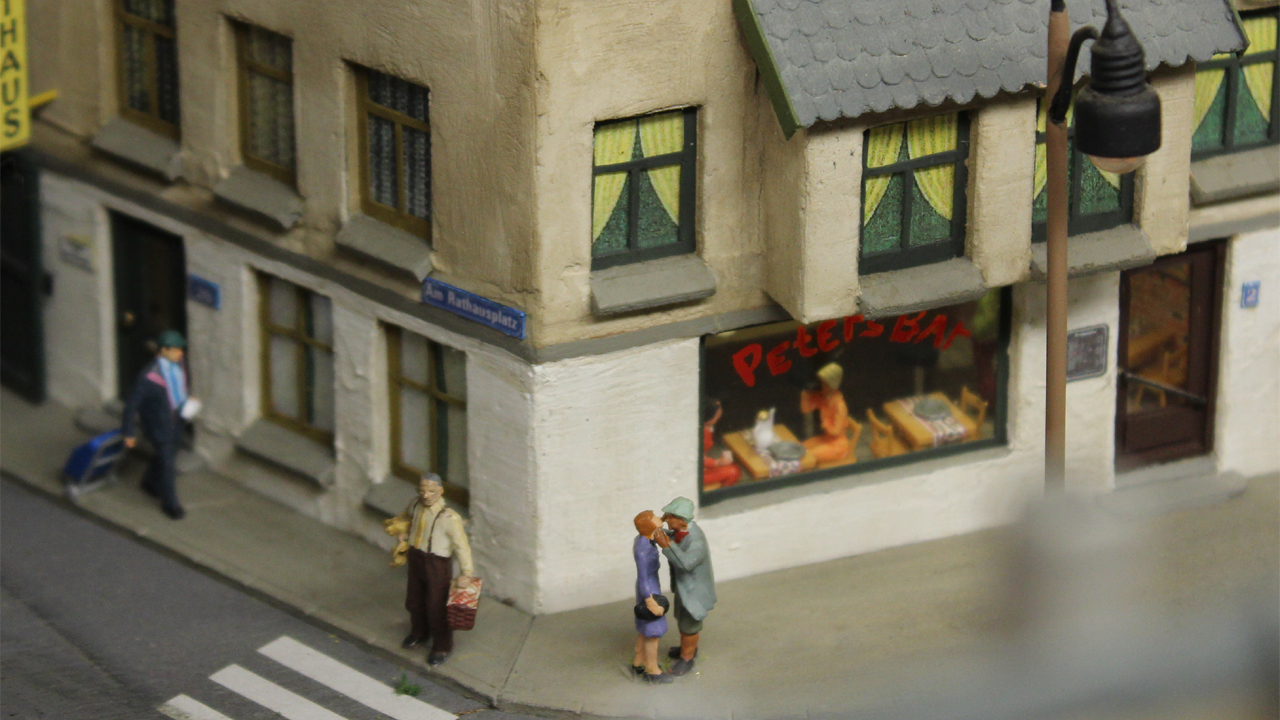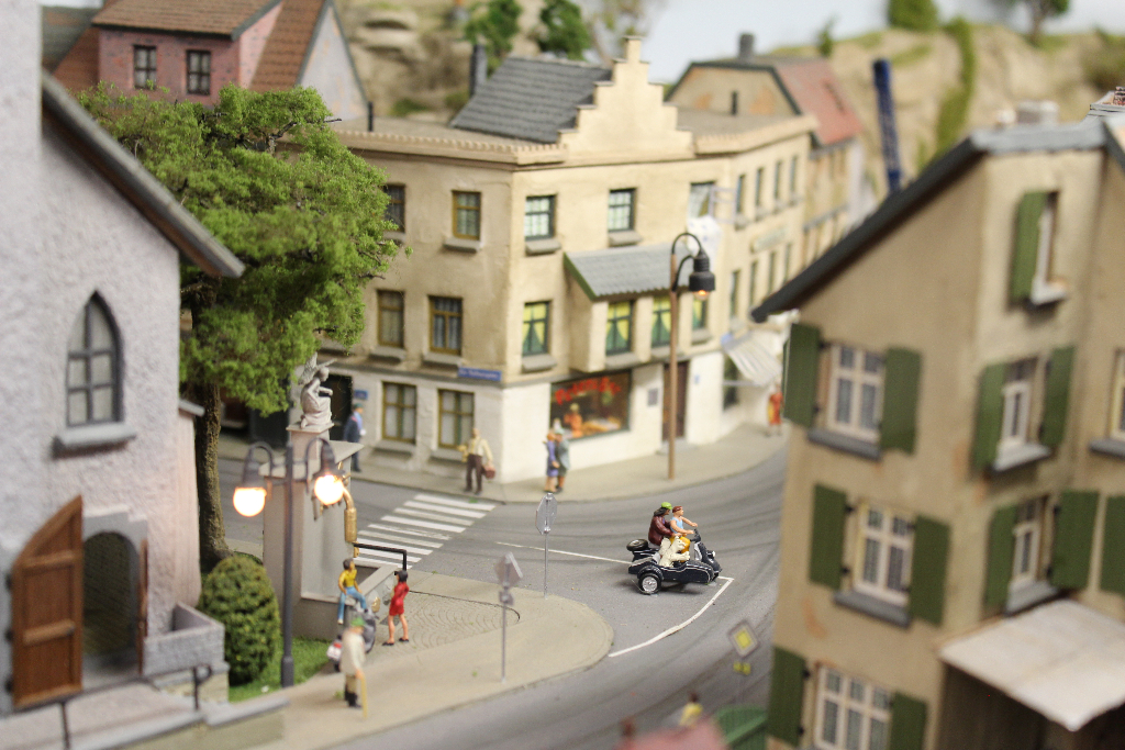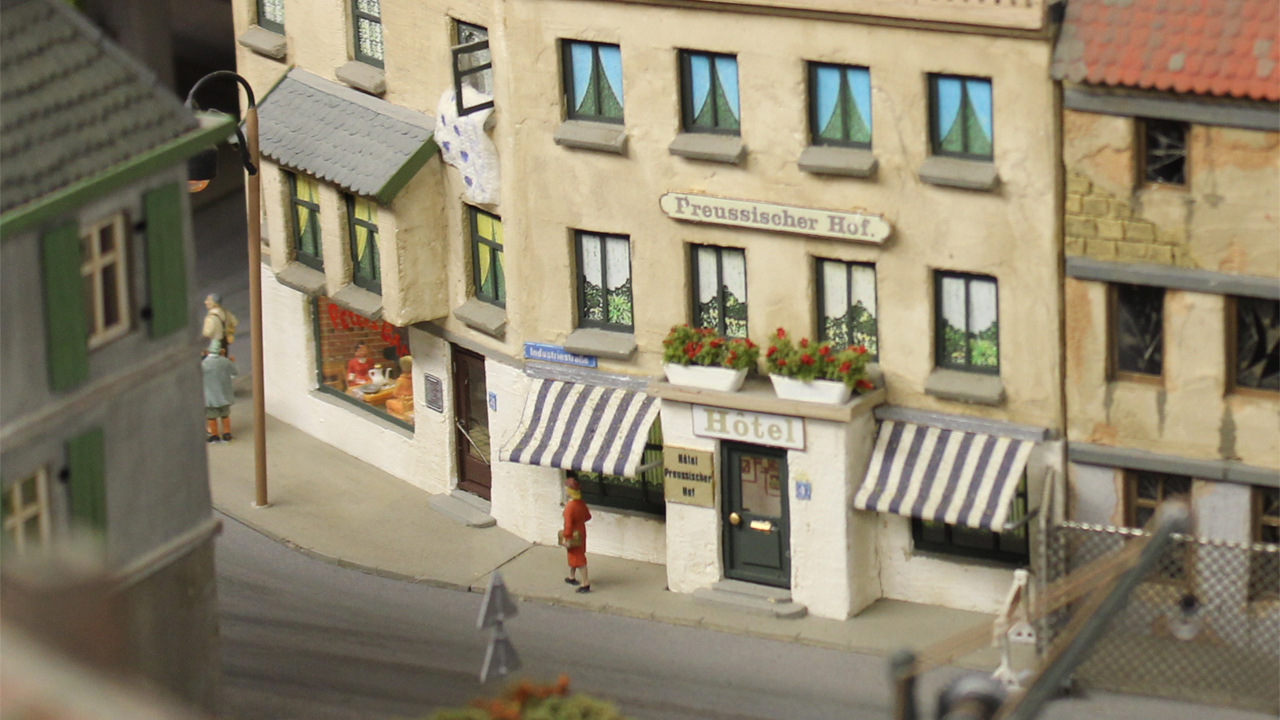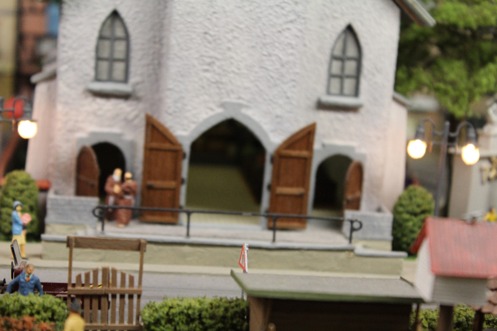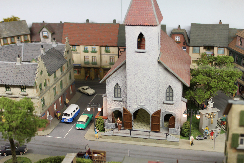 Dazu gehört der Fahrdienstleiter, der den Kopf bewegt, die Modellbahnanlage im Schaufenster, Tanz, sich bewegende Maschinen, einparkende LKW inkl. Einweiser, ein Auto auf einer Hebebühne, eine gehiesste Flagge, eine Abrissbirne, die gegen eine Wand hämmert, ein Auto auf einer Drehplattform im Schaufenster, eine Wanduhr mit sich bewegendem Pendel und vieles mehr. Schauen Sie doch mal, was sie alles entdecken.