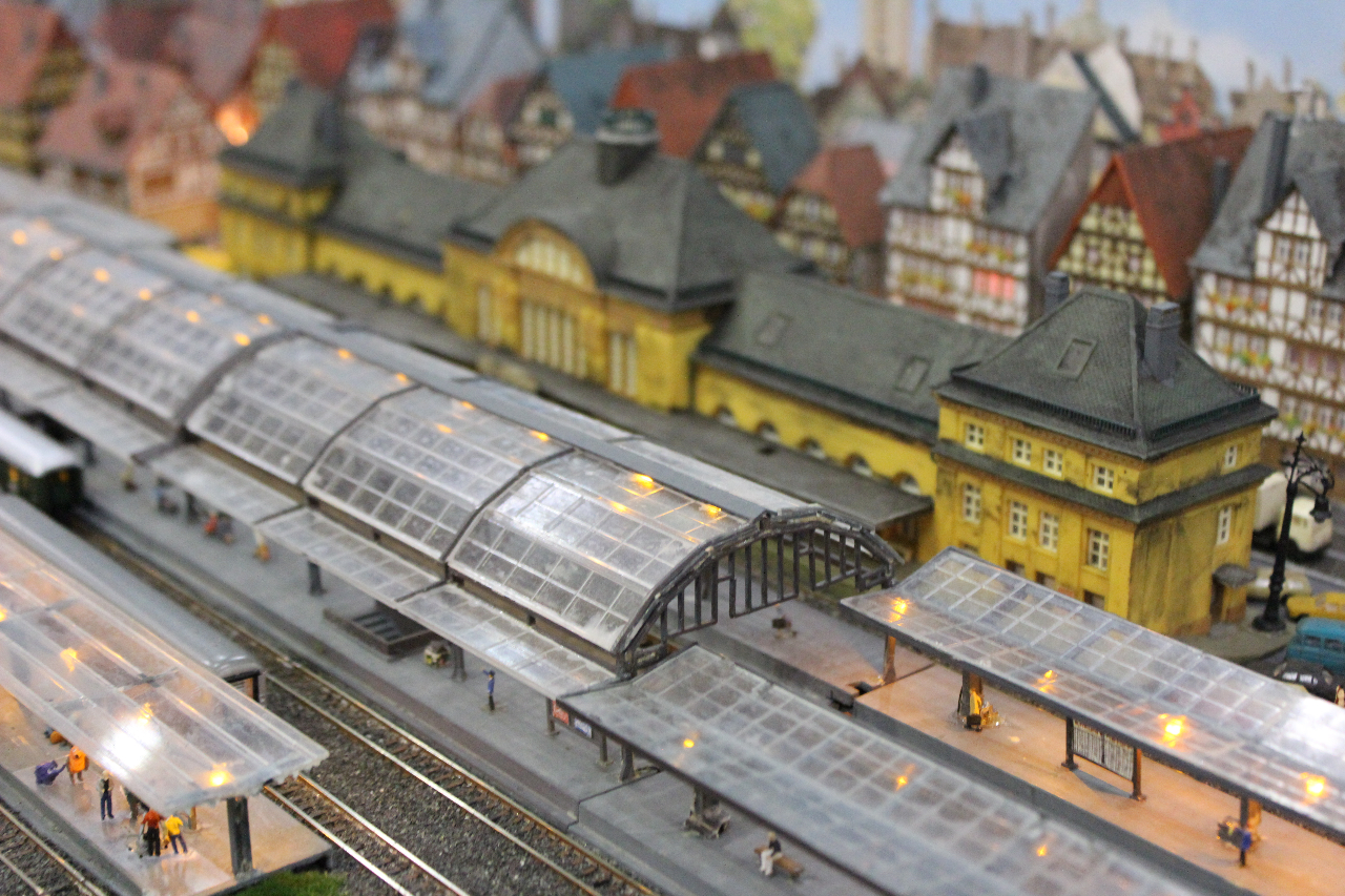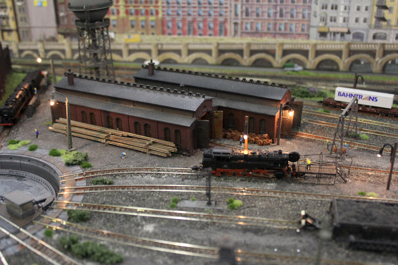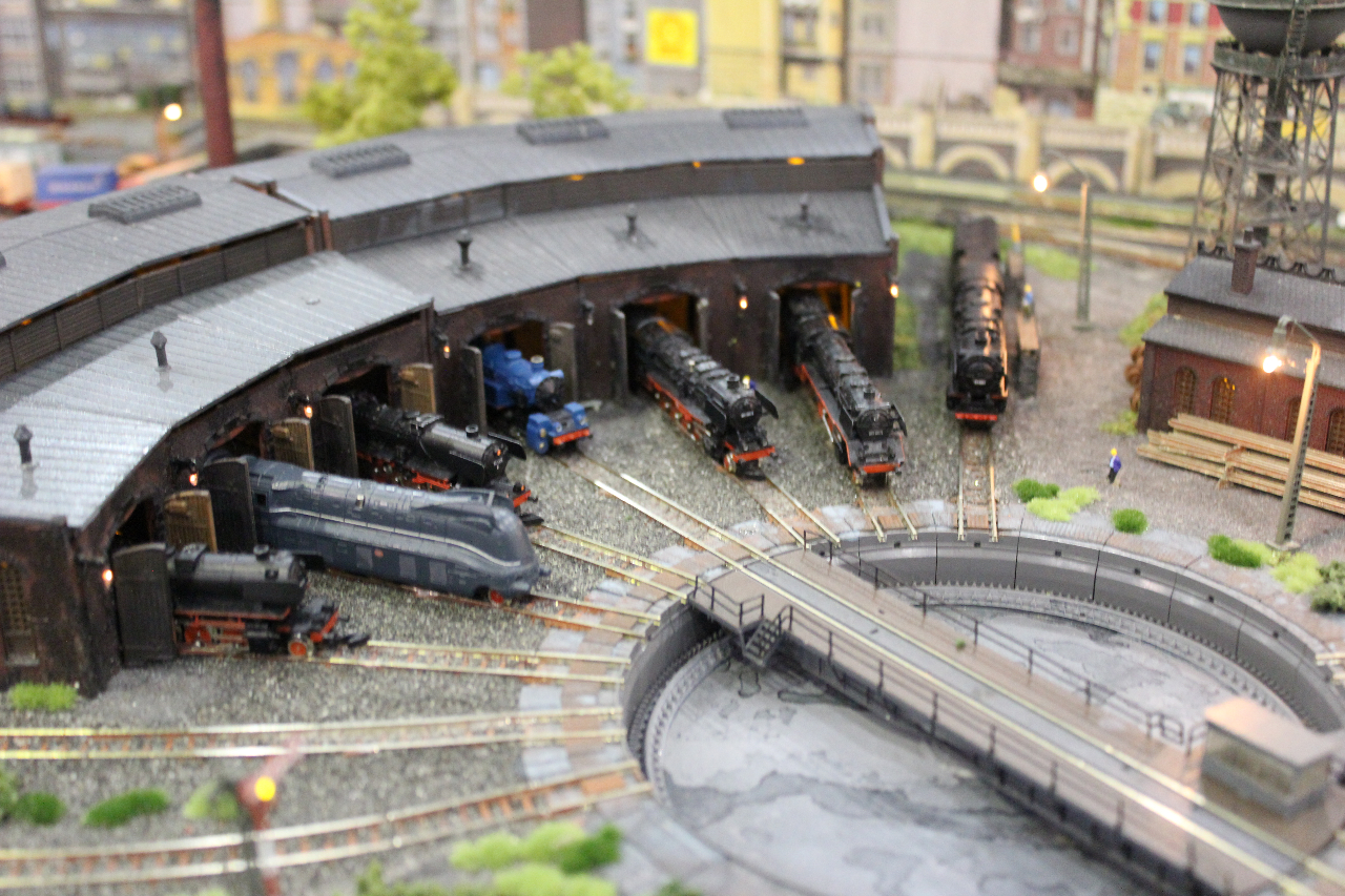 Zu den Highlights gehörten das BW mit 6-ständigem Lokschuppen und funktionsfähiger Drehscheibe, eine weitere Halle mit Schiebebühne, einen Instandhaltungswerk für Loks, typischen BW Installationen wie Bekohlungsanlage, ein großer Durchgangsbahnhof, mit dahinter liegender Altstadt, eine doppelte Bogenbrücke, die einen größeren Fluß überspannt und natürlich einer großzügigen Paradestrecke.