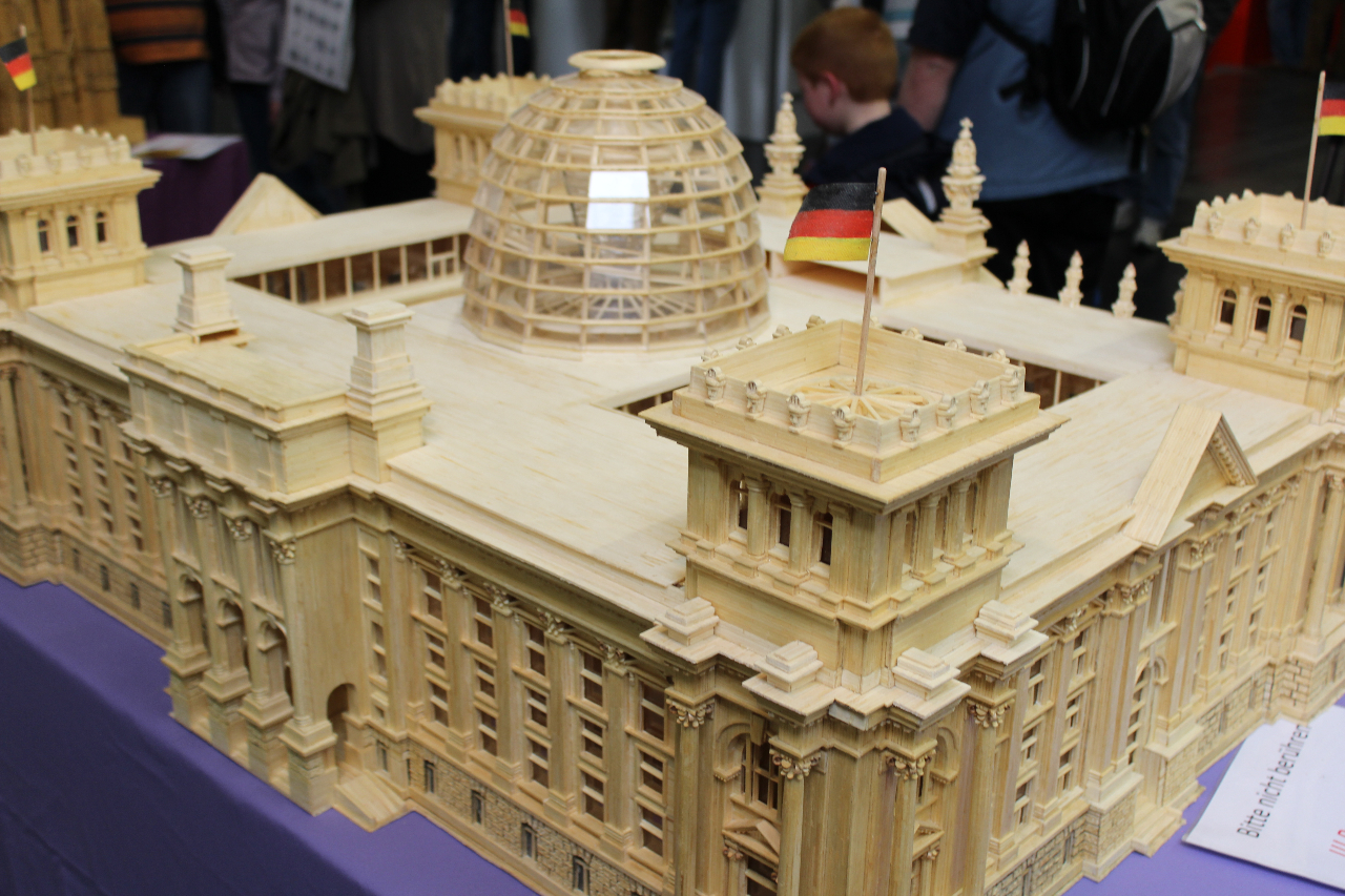 Der Kölner Dom besteht aus 900.000 Streichhölzern und wurde in 30Jahren Bauzeit mit ca. 50.000 Arbeitsstunden errichtet. Er ist 1,8 Meter lang, 1,2 Meter breit und die beiden Türme der gothischen Kathedrahle sind 1,6 Meter hoch. Am faszinierendsten sind die vielen Details am Modell. Wie am Original finden sich überall kleine Heiligenfiguren. Die Kreuzblumen auf den Türmen, die Bögen der Fenster und das Mauerwerk. Alles ist aus Streichhölzern gebaut. Auch die bunten Fenster sind selbst gebaut und bemalt und werden von innen angestrahlt.