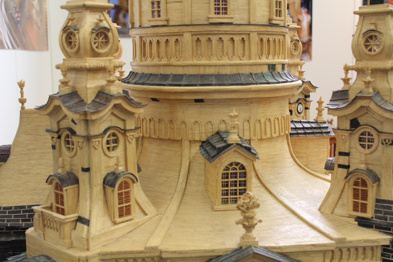 Das Modell der Dresdner Frauenkirche besteht aus 100.000 Streichhölzern. Innerhalb von vier Jahren (2005-2008) wurde das Modell in 8.400 Arbeitsstunden erbaut.